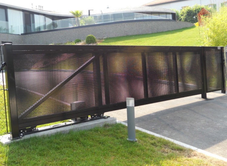 Totalement construits en atelier par éléments, les portails autoportants coulissants se posent sur une platine près - assemblée avec son mécanisme à sceller sur site.